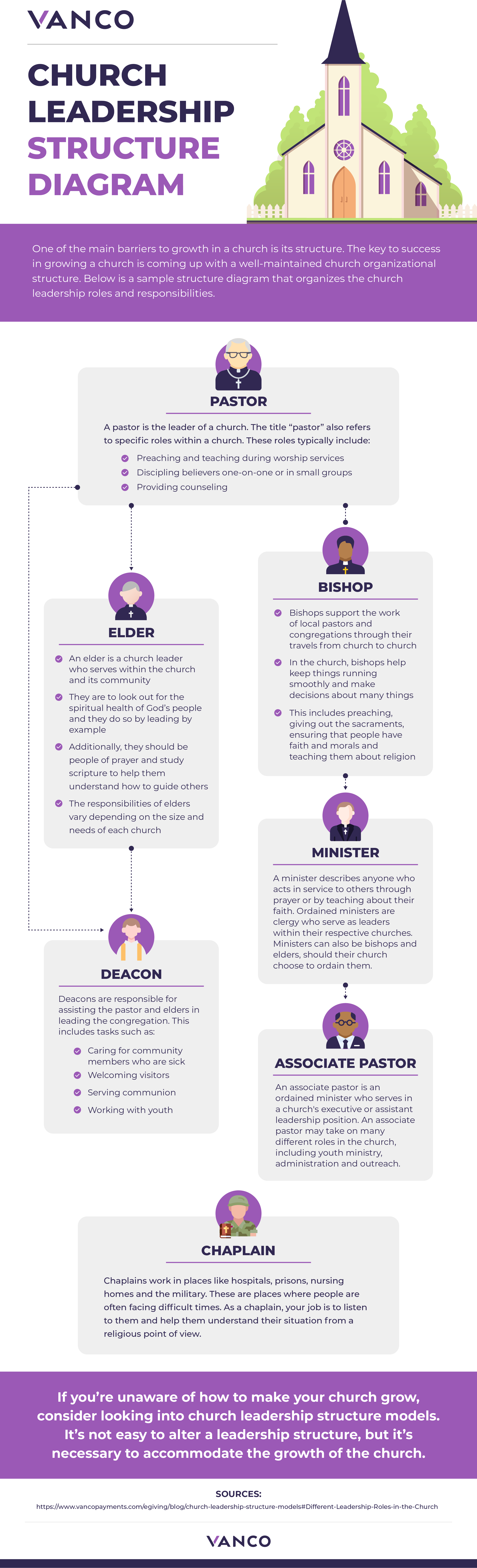 Leadership roles and church administration structures are not something you should take lightly. There are many different leadership roles in churches, but each plays an integral part in what makes a church successful.